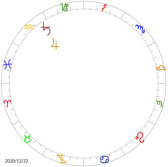 例えば、上のチャートように、今度の12月22日にみずがめ座で木星♃と土星♄が重なる。