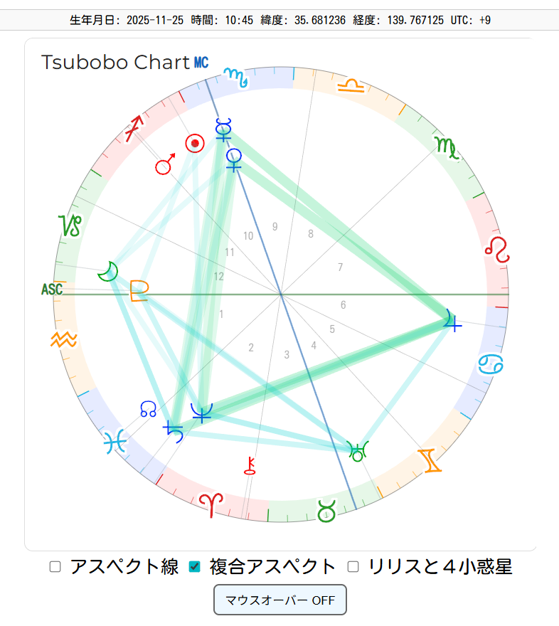 このつぼぼチャートで、星読みに興味を持った、星読みが楽になった、星読みが深くなったと思ってもらえれば、幸いであります。